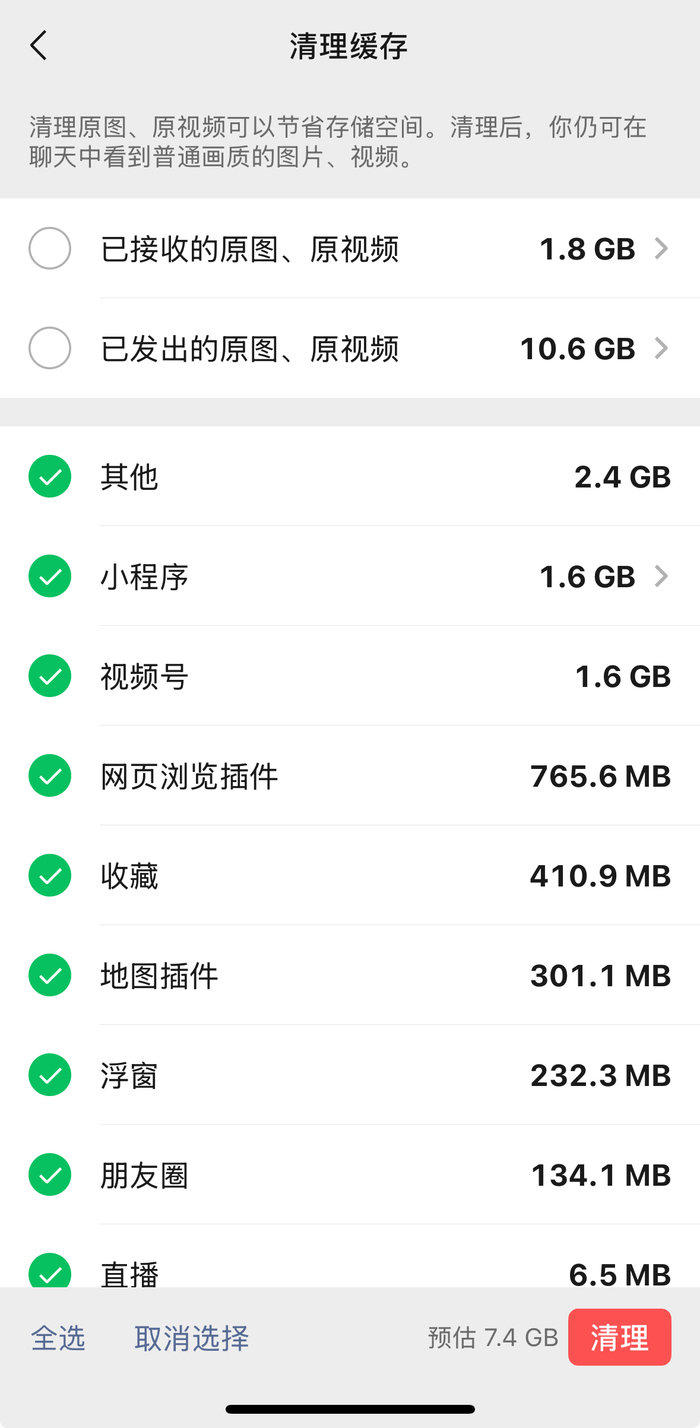 据界面新闻,3月6日,微信应用页面显示,微信已上线新功能,“清理缓存”选项中,新增可清理“已接收的原图、原视频”和“已发出的原图、原视频”。清理后,用户仍可在聊天中看到普通画质的图片、视频。