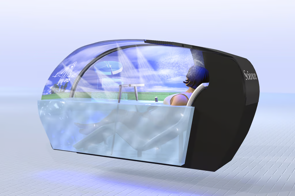 想像一下,你走进一个透明的“洗澡舱”,坐下后,温水和微小气泡开始包围你,15分钟后,不但全身干净,还顺便放松心情,因为里头的AI会根据你的脉搏,播放可令人感到舒缓、放松的影像。