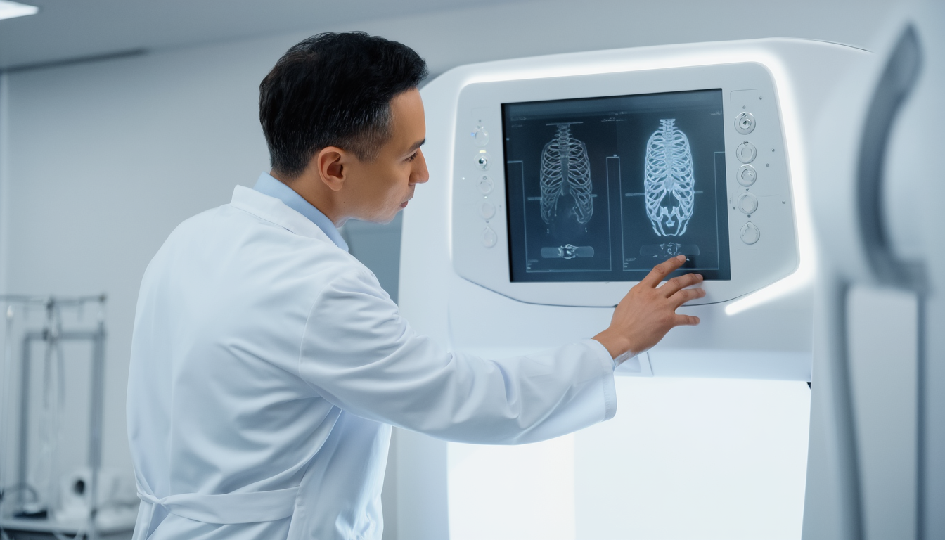 核心突破在于AI对骨骼形态的跨模态理解能力——模型通过分析有限二维投影数据,结合先验医学知识库,实现亚毫米级三维重建精度[2][3]。该技术将单次检查辐射量从传统CT的1.5-10mSv降至0.015-0.1mSv,降幅达99%[2][1]。