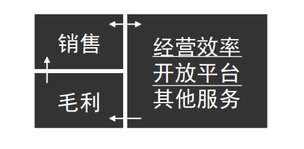 简而言之:以低价打开市场,规模效应得以显现,一方面能够减少经营费率、提高运营效率;另一方面,随着销售增长,客户流量也不断增长,吸引更多商家加入其开放平台并使用其他服务,与销售收入相互作用。而经营效率的提高以及其他服务的收入,回头再支持其低价的策略,形成一个良性的闭环。