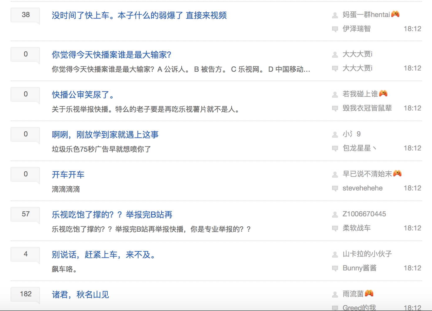 才疏学浅的我特意去查了“开车”的意思:“就是发一些资源的链接,被称为开车”,羞羞哒。而且老话儿怎么讲来着,敌人的敌人就是朋友,这次,曾受乐视伤害过的B站粉也在第一时间火速支援了快播粉,为大家展示了他们的姿态。