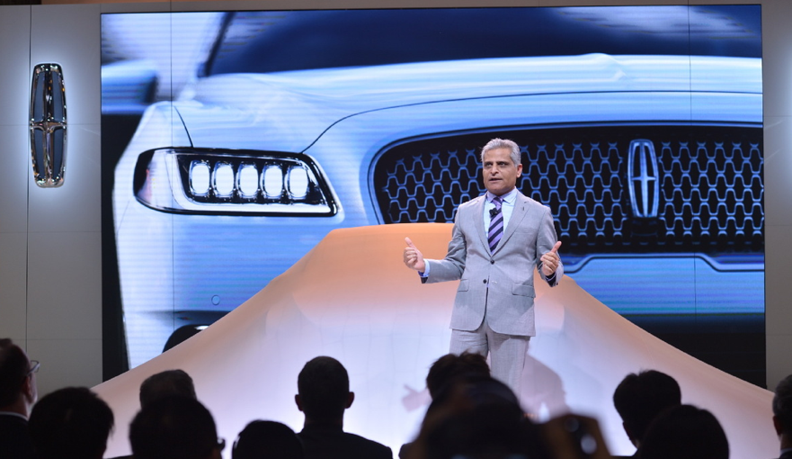 题图:林肯全球总裁葛皓华 (Kumar Galhotra) 在北京车展发布会现场