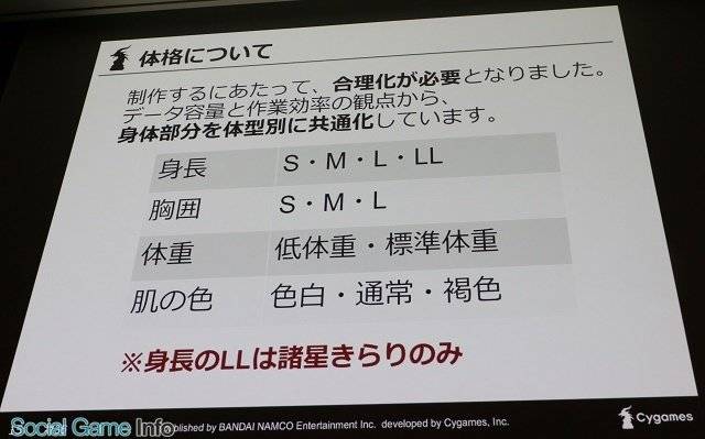 Cygames指出,2D转3D最重要的一点,是原画的还原。而且要还原的不仅是偶像的外表,还要在手机上流畅的表现出角色最可爱的一面。角色建模的标准如下: