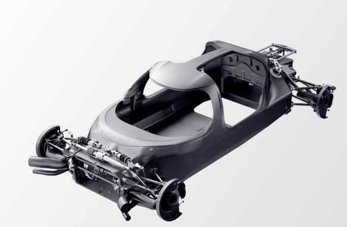 Rimac 的两款车,电池组和 EP9 的布置方式不同,前者采用的是 T 字形布置,而 EP9 的两组电池分列于车身两侧。