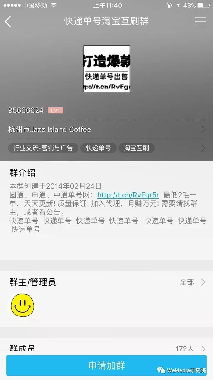 QQ群搜索“买卖快递单号”出现几十个活跃的群。