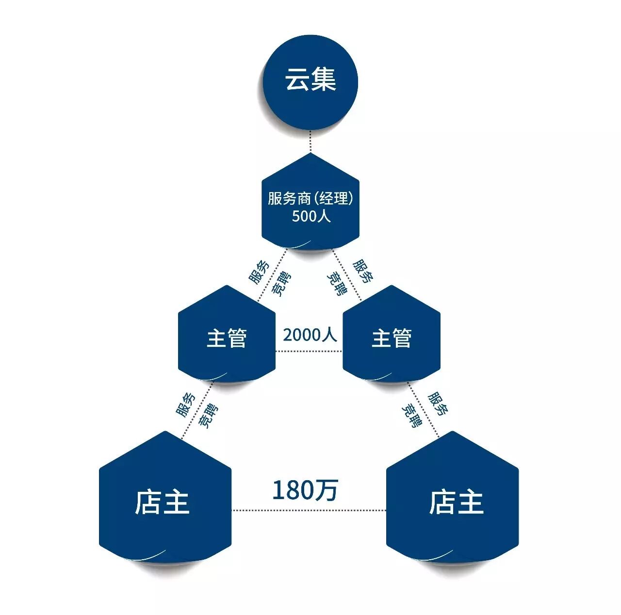 在店主通过直接邀请和间接发展100名新店主以后,就成为云集主管,之后邀请的每一位新店主,他都能得到150元/位的培训费和15%的销售佣金;团队人数达到1000人后,主管就可竞聘服务商(经理)。