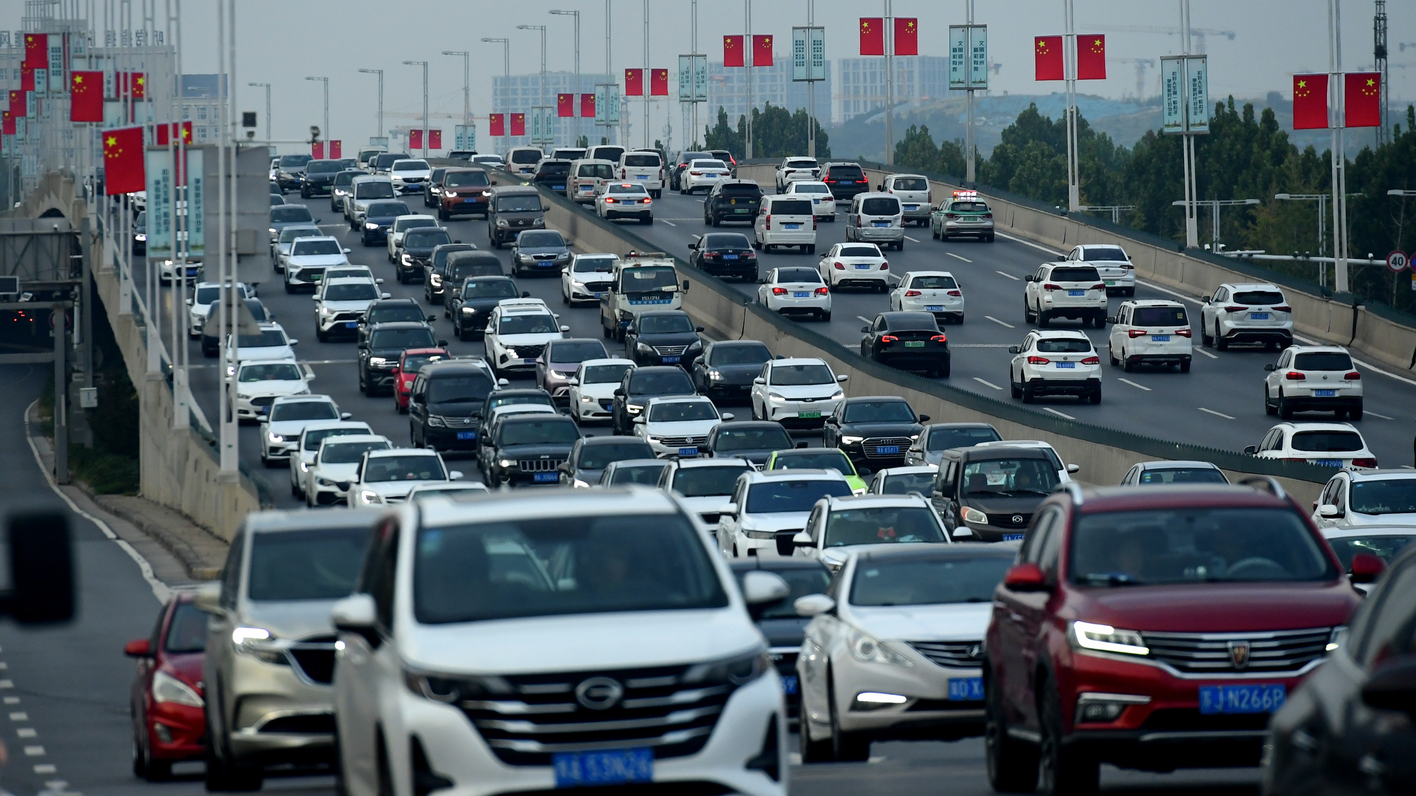 报告显示,全国高速拥堵峰值预计在中秋节当天9月29日上午10:00~11:00期间出现。十一假期全国高速整体拥堵程度较去年上涨或超90%,创下近年同期最高。而假期第四天开始,预计返程车流增多,10月2日、10月3日将出现返程的全国高速拥堵高峰。