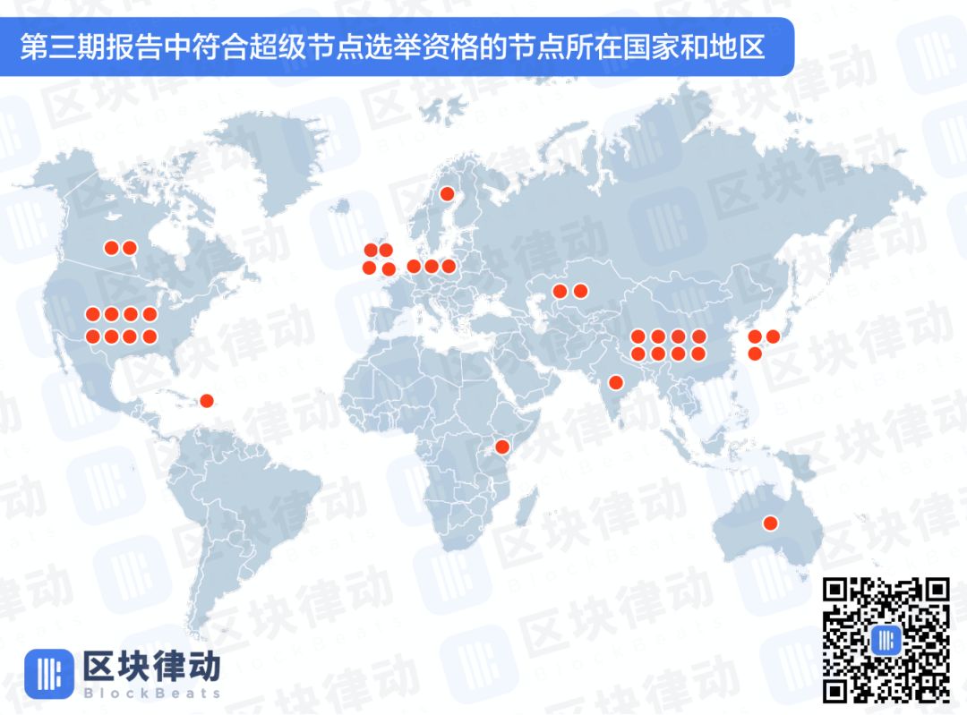 在 3 月 22 日 EOSGo 社区公布的 EOS 主节点竞选报告中,已经符合竞选标准的节点中,中国节点数量为 8 个,美国节点数量为 8 个,韩国节点数量为 3 个,还有其他多个国家的 EOS 社区的节点,总计 35 个。此外,还有 24 个节点暂未达标。