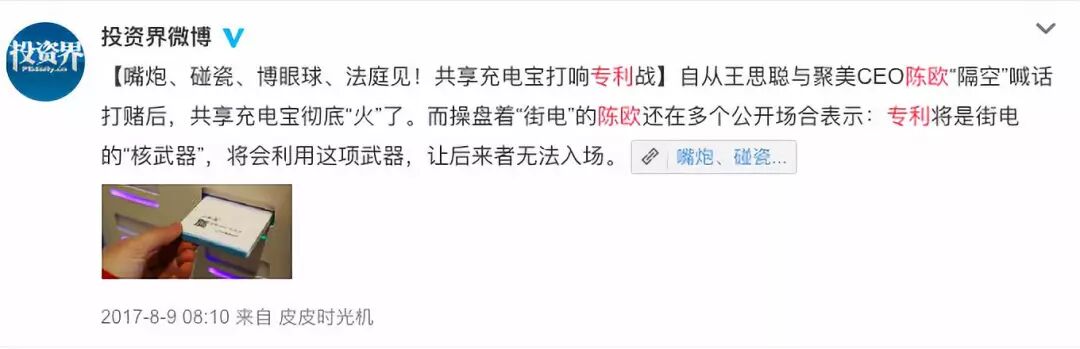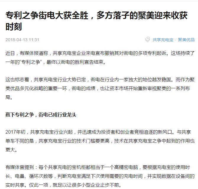 正如古语兵法说的那样,兵马未动粮草先行。在法院宣判之前,关于共享充电宝专利是非臧否的公关攻势先在舆论场中展开。