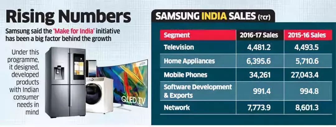 三星向公司注册处(RoC)提交的文件显示,其2017年在印度的策略是以利润为核心。2017财年,其在印度的业务利润大幅增长,家电业务利润达到上一财年的3倍,电视业务利润达到上一财年的2倍。但其电视的销量,大致与上一财年持平。