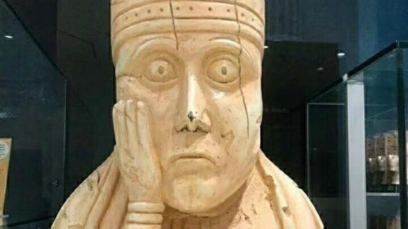 就是图上这款,冰箱贴的设计来源是大英博物馆展出的路易斯棋(Lewis chessmen),刻于12世纪,材质多为海象牙。那枚著名的表情包“你竟然打我”拍得其实是这套古国际象棋里“后”的棋子。不过,如此有趣的文创周边,大家当然都想买,听说冰箱贴7月初在大英博物馆天猫旗舰店上了以后迅速售罄,至今还没补货。