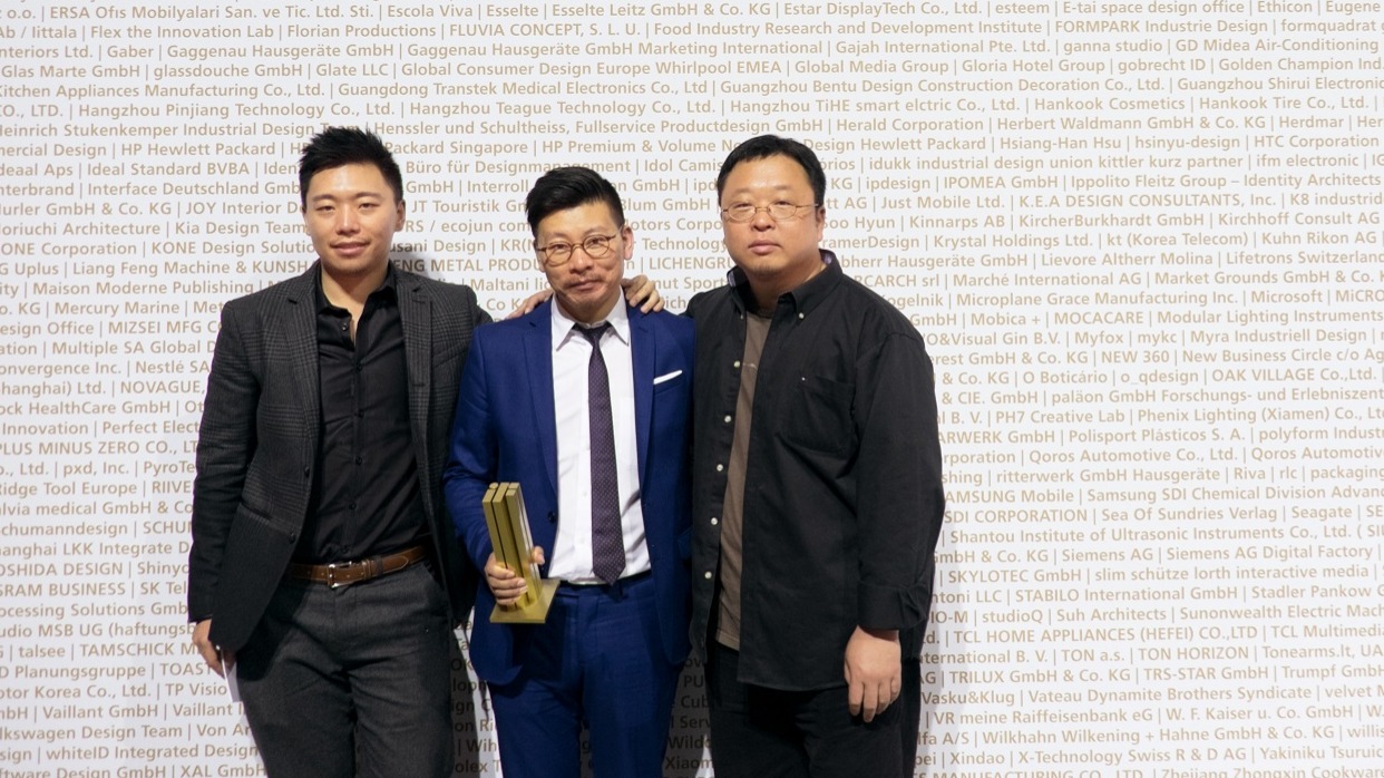 题图为 Smartisan T1 包装盒获得 IF 金奖时的画面,李剑叶为图中左二