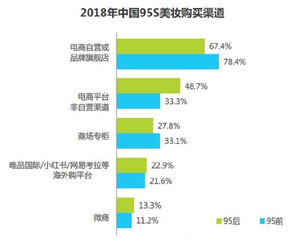 2018年中国95s美妆购买渠道(来源:《2018年种草一代:95后时尚消费报告》)