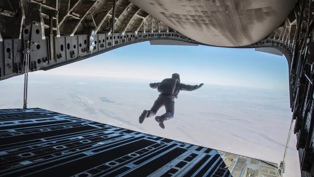 如果是别的电影,看到危险刺激的场面,你马上就能想到电脑特效。然而,这是碟中谍!它疯狂的地方就在于真实的特技拍摄。该系列的每一部电影都有让人印象深刻的特技表演,而此次的碟6就让更多的人认识了HALO Jump(High Altitude - Low Opening),即“高跳低开”跳伞。顾名思义,就是跳伞时,出舱高度高,开伞高度低。它的技术难度非常高,但是,能有效缩短伞兵的滞空时间,从而降低暴露的风险、提高隐蔽性。