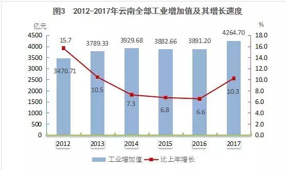 比如,云南2017年的三产比例为14∶38.6∶47.4,二产严重发育不足,这使得经济总量更高的云南,规模以上工业增加值反而比贵州低——贵州是4304.8亿,云南只有3876.34亿。
