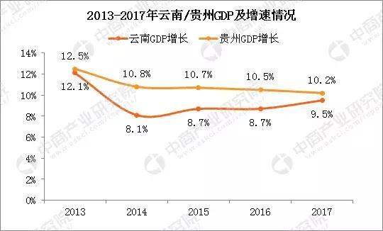 在全国经济整体下行的2014年,云南的增速,从2013年的12.2%骤降到8.1%;贵州则从12.5%下降到10.8%。整体来看,贵州的经济稳定程度要比云南高,调整能力更强。
