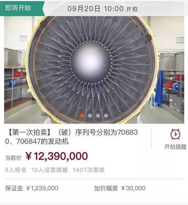 据中国民航网的消息,9月21日,顺丰航空通过中国某网上拍卖平台竞拍得到2台受损发动机。这两台发动机的成交价格为2502万元人民币,与1239万的起拍价相比,溢价约102%。