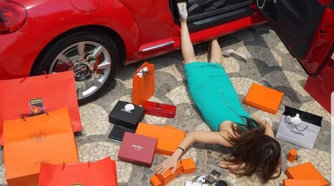 私人飞机、跑车和游艇若隐若现地(划掉)出现在照片背景,同样抢镜的还有散落一地的 Gucci、LV 和钞票,让人看了都不敢扶,生怕是跨国集团大型碰瓷。