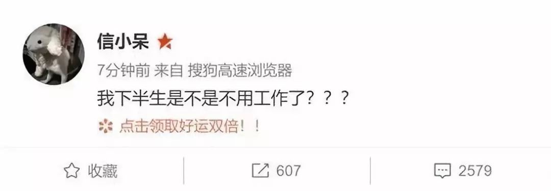 这句话威力极大,它给了参与抽奖的韭菜们一个非常具体的幻觉:只要我关注转发这个链接,就可能下半辈子衣食无忧。