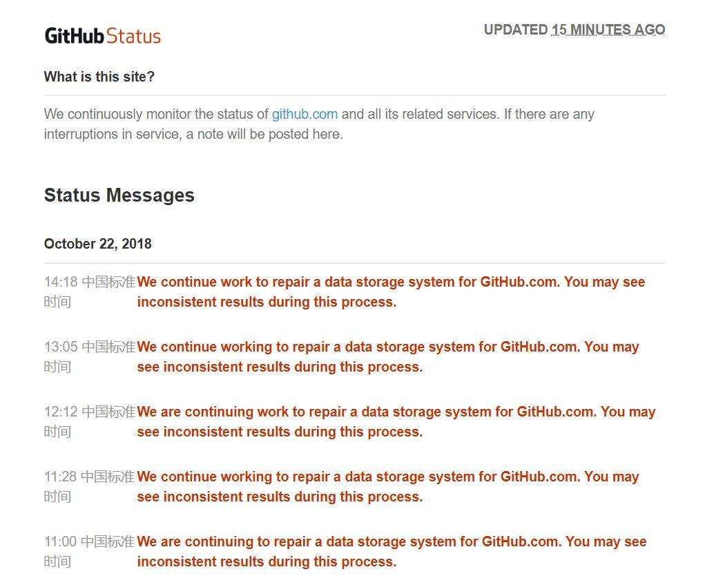 但如此大范围的宕机到底是什么原因引起的?根据 GitHub 的 Status Message(状态信息),原来是数据存储系统出了问题。