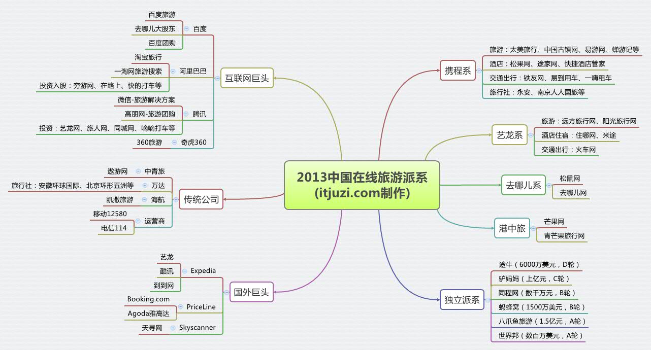 对于创业者而言,在线旅游是个很特别却又难抉择的领域:一方面因为很多人喜欢、个性化,很多方面都充满着创业机会;另一方面,旅游服务竞争太激烈、规模效应不好做,每年总是一批公司成立又一批公司转型或关闭,这个时候,突围、还是站队被摆到了面前。为什么我们会怎么说呢?先看一副IT桔子整理的国内在线旅游格局图: