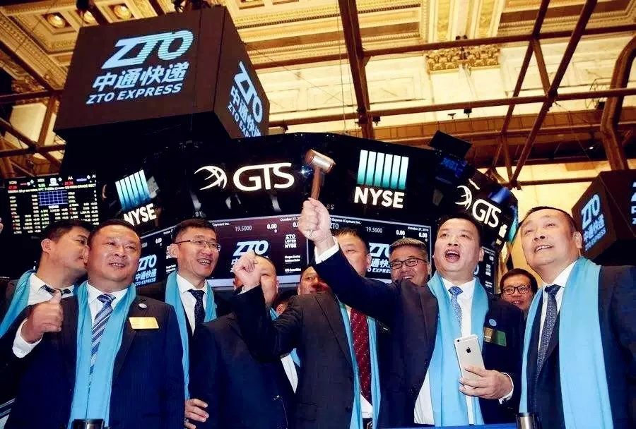 话说当时快递大佬们心里都藏着一口气,欲以最快的速度抢下“中国快递第一股”这个桂冠。其中尤以圆通和中通的争夺最为激烈,一个A股,一个美股。最终,圆通抢先一步,喻渭蛟、张小娟夫妇于2016年10月21日在上海证券交易所敲响上市锣。六天后,2016年10月27日,赖梅松携手创业期的合作伙伴在位于大洋彼岸的纽约证券交易所敲响中通上市钟。