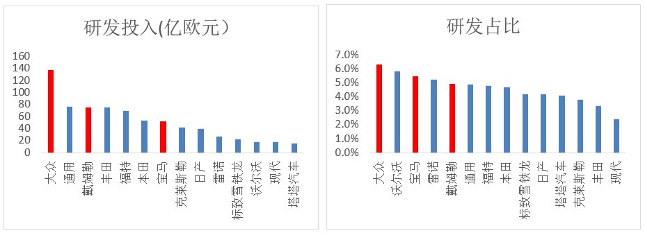 德国汽车行业研发投入业界领先,数据来源:OICA、EU、国泰君安证券研究