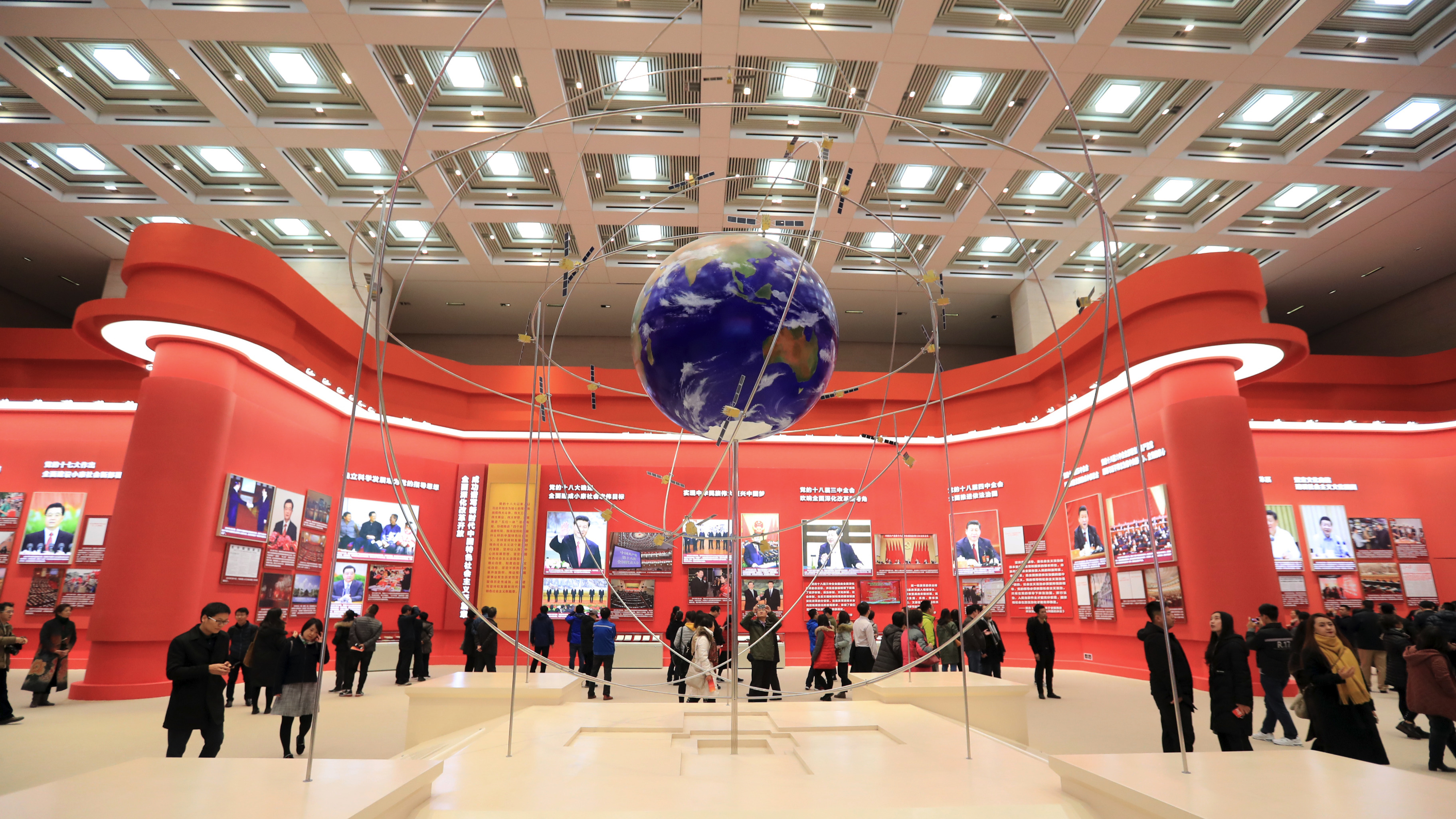 本文头图:2018年11月29日,在伟大的变革——庆祝改革开放40周年大型展览现场的北斗卫星导航系统模型。©东方IC