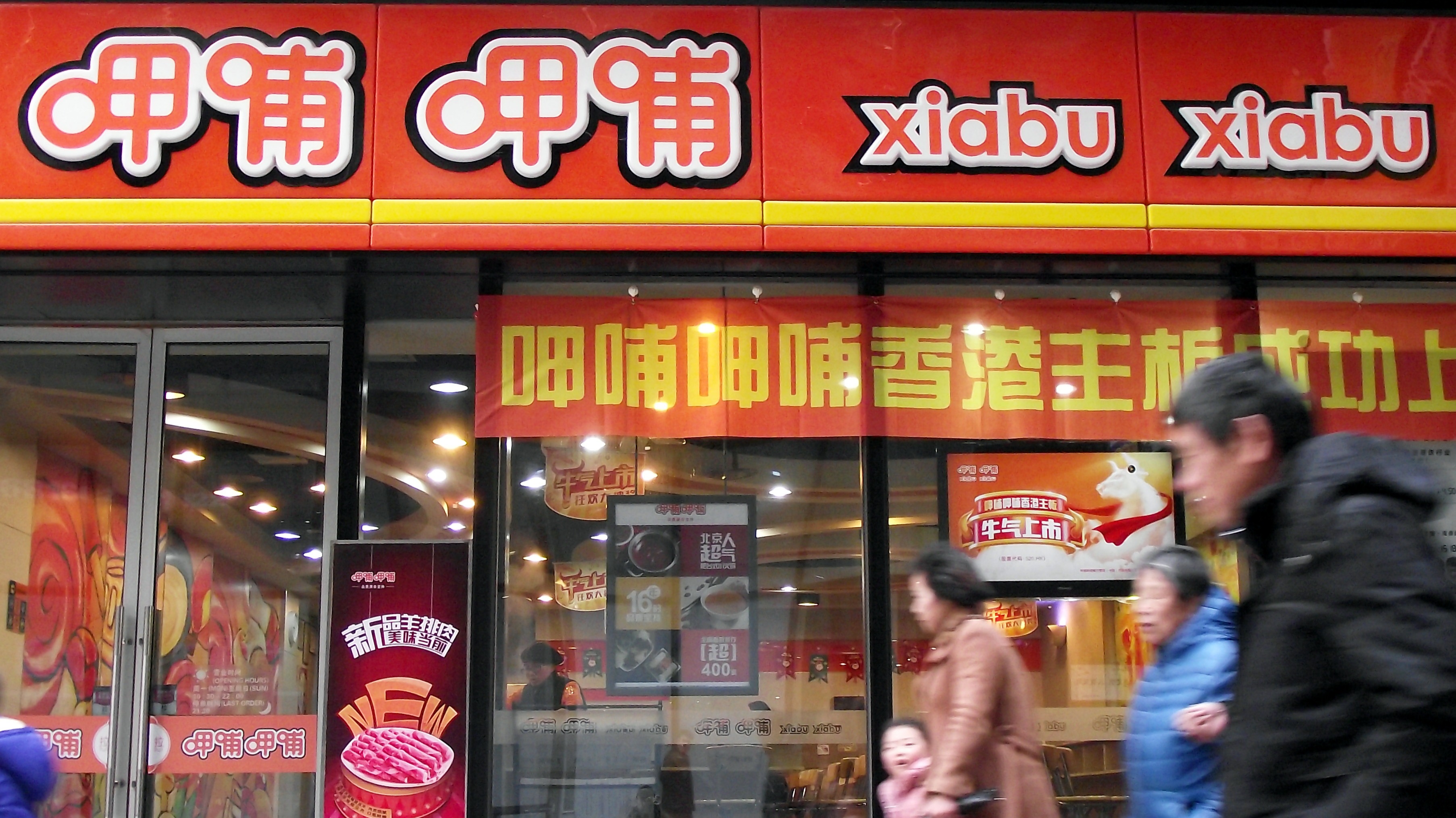 头图:2014年12月21日,江苏常州,呷哺呷哺吧台式涮锅餐饮服务连锁门店悬挂着庆祝呷哺呷哺港股上市的横幅。©东方IC