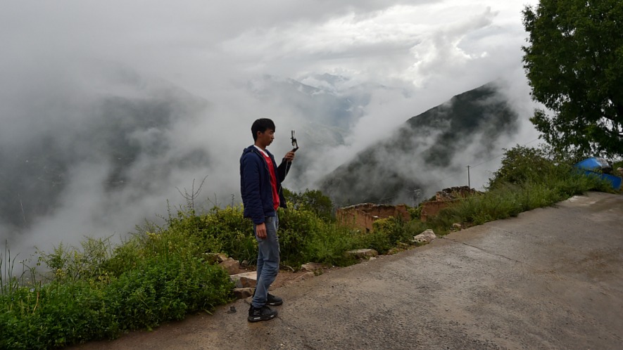 彝族小伙儿某色苏不惹,从小在悬崖村长大,为了让更多人了解悬崖村,他学习使用软件上传“天梯”视频,相关视频几乎都上了热搜。