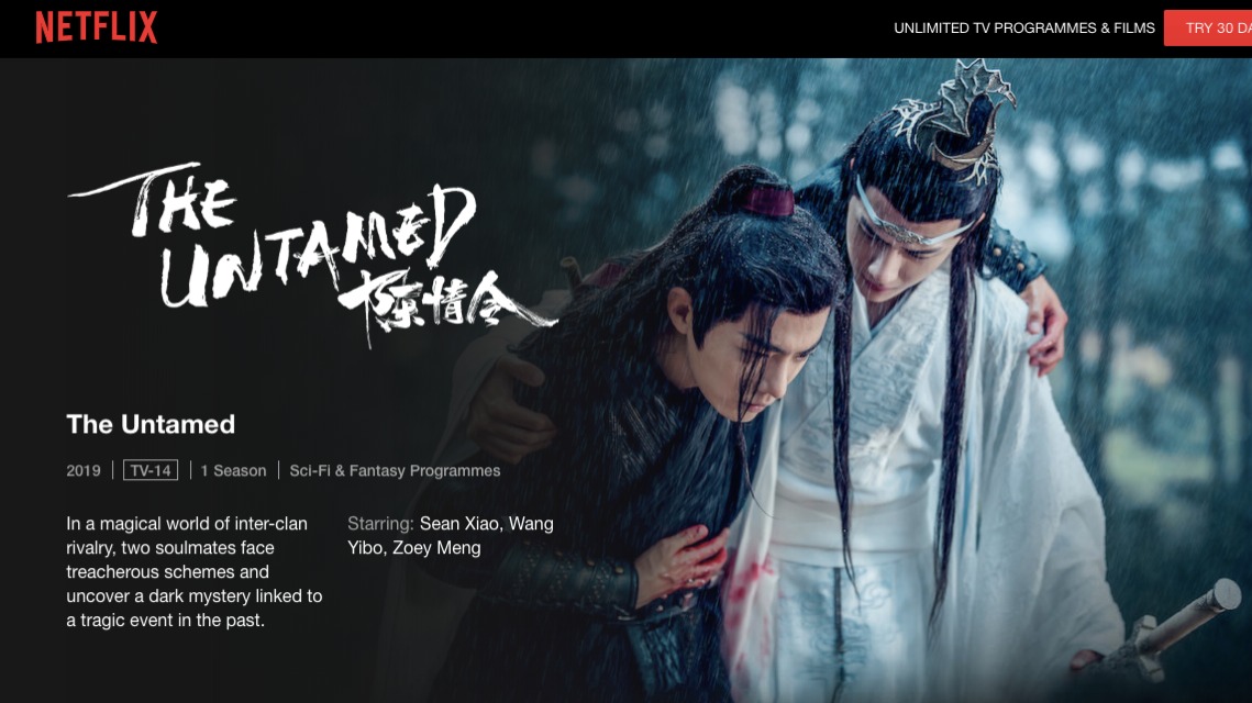 2019年10月21日,《陈情令》出现在奈飞的首页上,于10月25日在北美、南美和欧洲等地播出。