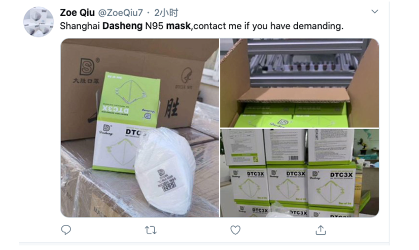 DominicGBrown在4月20日吐槽说,这真是不可思议,没有资质的制造商每个口罩都要6美元!