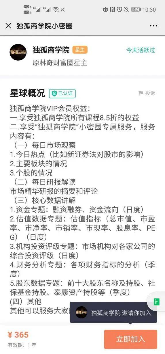 比如付费阅读,独孤商学院以知识星球为平台载体,其VIP小密圈标价365元/年,服务内容包括每日市场观察、研报解读和核心数据讲解等。