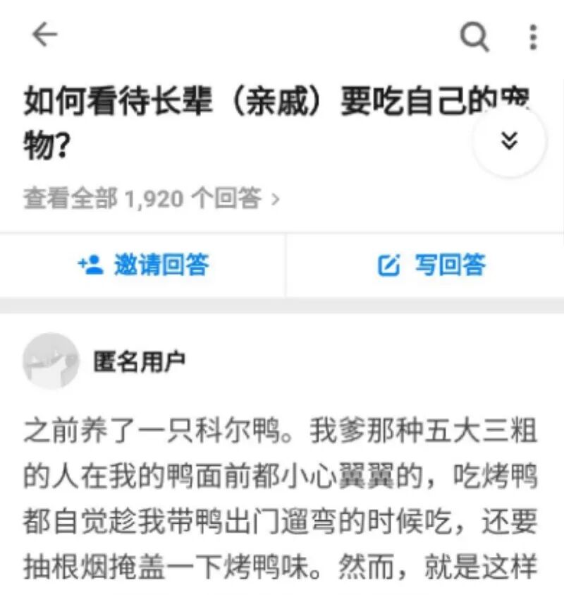 有人为了能够频繁地亲手撸到鸭子,不惜重金买下做宠物。在知乎上,一网友养鸭之后,父亲吃烤鸭都要躲着宠物鸭三分。最终,该网友的鸭子因为被亲戚“误食”而险些引发家庭纷争。