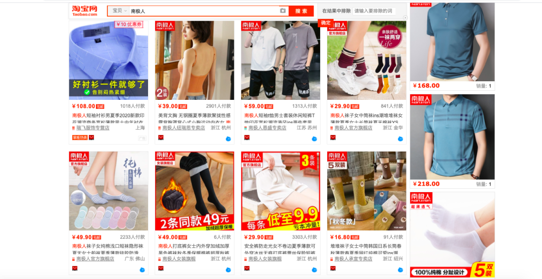 在淘宝上搜索「南极人」,你会发现发现南极人的品类涉足之广,令人咋舌。