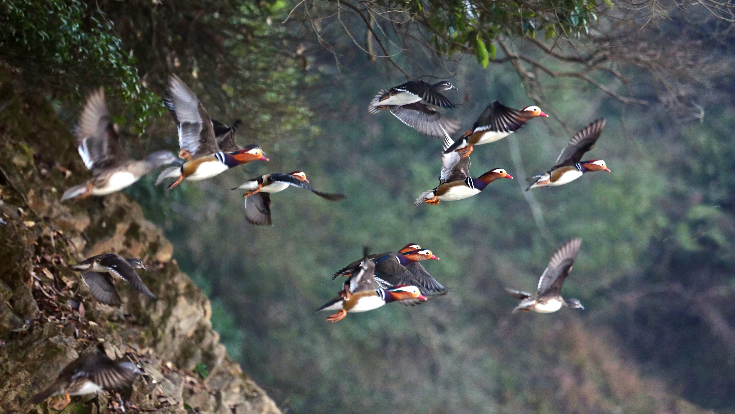 有四只雄性一起来吸引雌性,它们在雌性面前上下翻飞,把雌性看得有点眼花缭乱了。