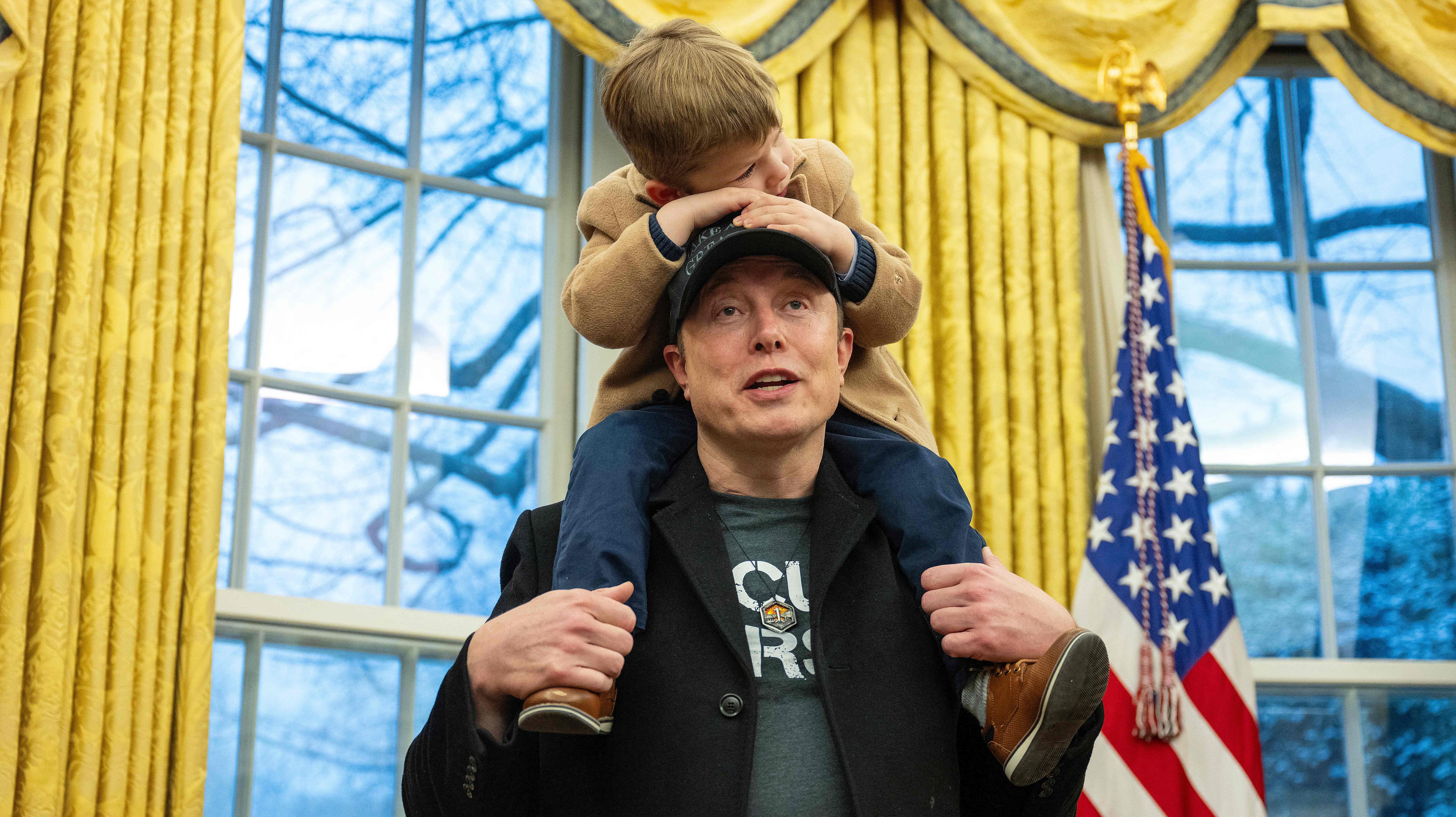 美东时间2月11日周二,马斯克与四岁的幼子一同现身白宫,戴着一顶“让美国再次伟大”的黑色帽子,并与美国总统特朗普一同出席新闻发布会,为他所领导的政府效率部辩护。这是马斯克首次在联邦政府成本削减的工作中面对记者的提问。