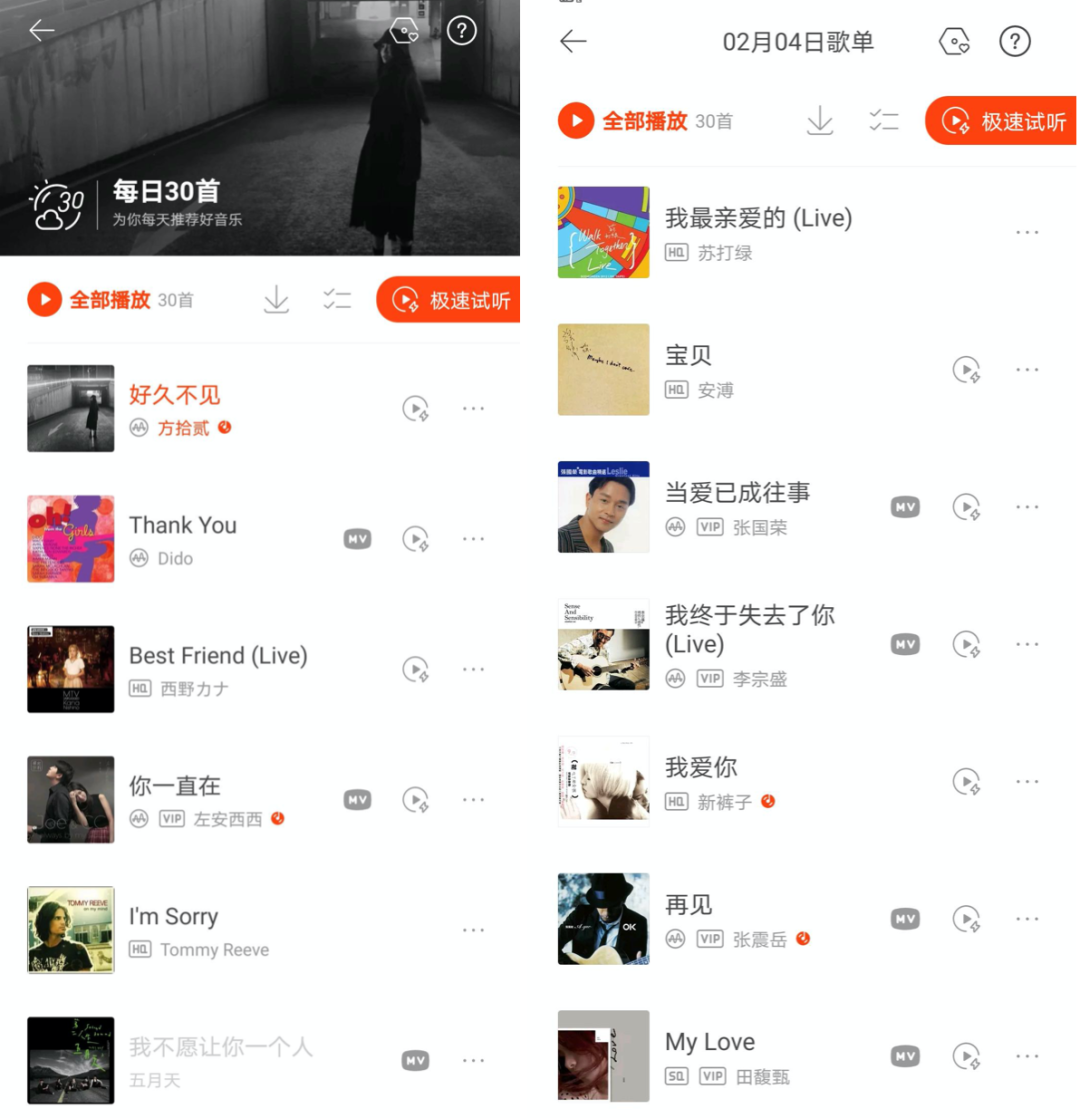 2月4日这一天,细心的虾友们发现,虾米为平台所有用户统一定制了“每日30首”歌单,最后7首歌的标题,温柔诉说着每个人心中的不舍。