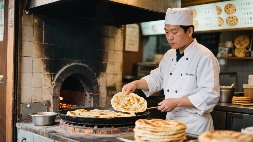 片中,烧饼店店主就是传统火烤技法的第七代传承人。