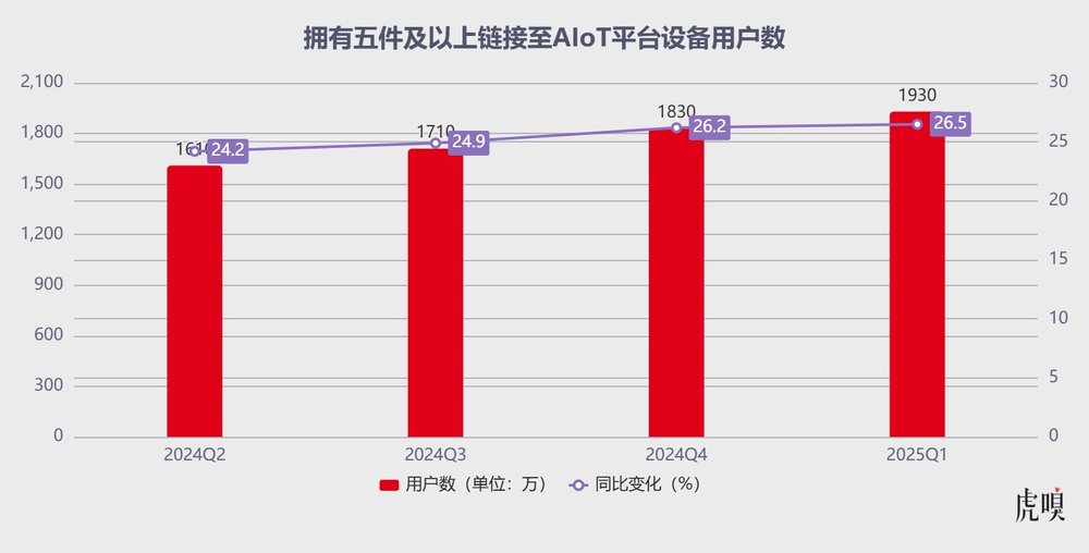 有一组数据能很好地说明消费者对于“一站式家居升级”的需求:从2024年二季度开始,小米在财报中加入了“拥有五件及以上链接至AIoT平台设备(不包含手机、平板、笔电)用户数。