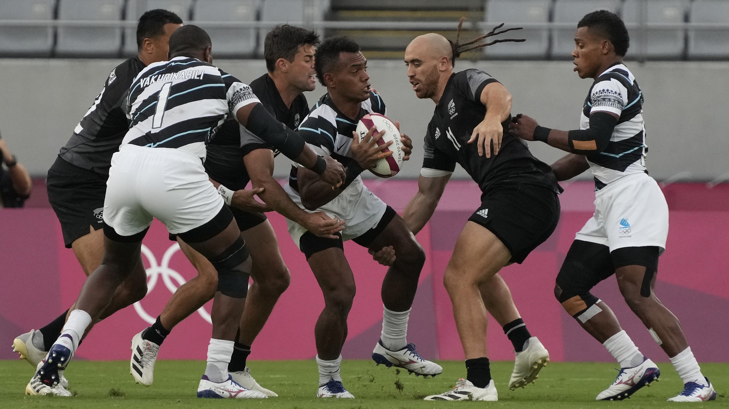 2016年里约奥运会首次设立了七人制橄榄球项目,面对新西兰、澳大利亚和英国等强手,斐济男子队过关斩将夺得金牌,这也是斐济有史以来第一枚奥运奖牌。东京奥运会前,他们已经有16个月没有参加国际大赛,7月28日赢得决赛、再度夺金后,唱完国歌的斐济队齐声合唱起福音赞歌《超越自己(E Da Sa Qaqa)》。这次胜利也让疫情肆虐中的小岛为之振奋。