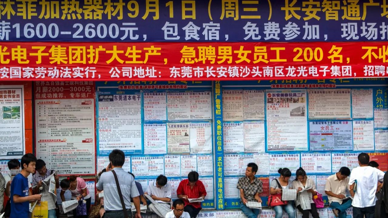 车站外的墙上、路边的电线杆上、公交车站台上、工业区的公告栏中、围墙上,全是招工广告,信息五花八门,真假都有。