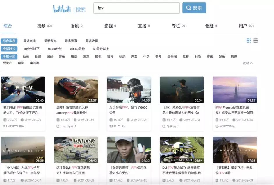 除了公司化职业化的资本进场外,大量的FPV爱好者在B站发布各种各样的FPV视频,这其中不乏后来很火的几个up主。