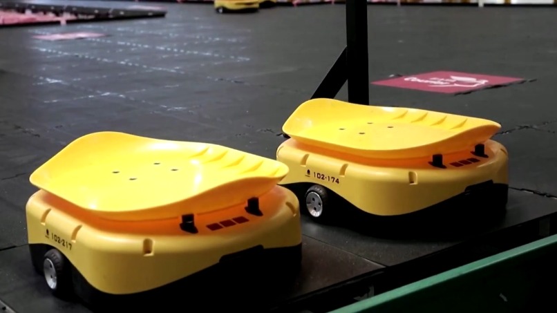55台由人工智能驱动的小型四轮自动移动机器人正在加速艰苦的快递分拣过程。(来源:Robots give Greece's postal service speed boost)