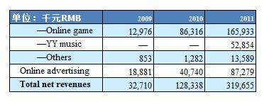 根据招股书,欢聚时代目前业务体系主要包括:YY语音,YY.com(YY音乐,YY教育等)及多玩游戏网,手机YY。