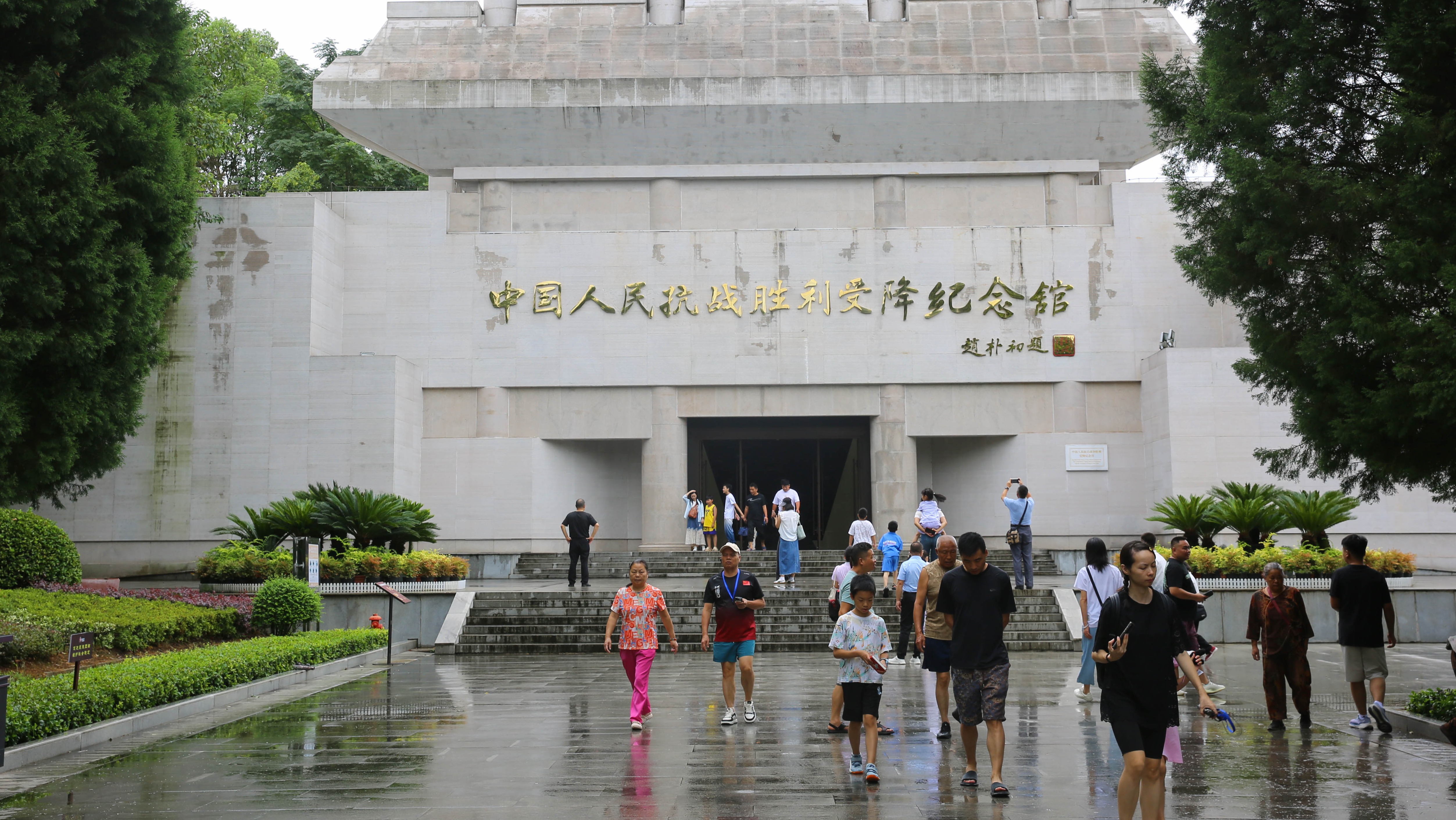 随后在9月9日,中国战区范围内的侵华日军在南京中央军校大礼堂正式向中方无条件投降。来自中国、美国、英国、法国、加拿大、荷兰、澳大利亚、苏联等国的军官及媒体记者共400余人参加了受降仪式,同盟国代表一共47人。这充分表明这一受降仪式是在国际社会的见证下举行的。在华日军总司令冈村宁次向中国陆军总司令何应钦递交日本投降书(中日文各一份),仪式历时15分钟。