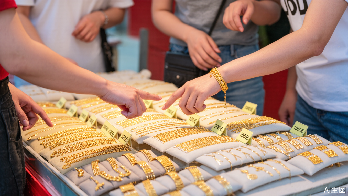 出厂价10元左右的黄铜镀金首饰,到了街头夜市上,就摇身一变成了40元左右的“沙金”首饰。而在网上的直播间里,更是被主播包装成所谓越南提纯“沙金”,一件首饰卖到上百元。