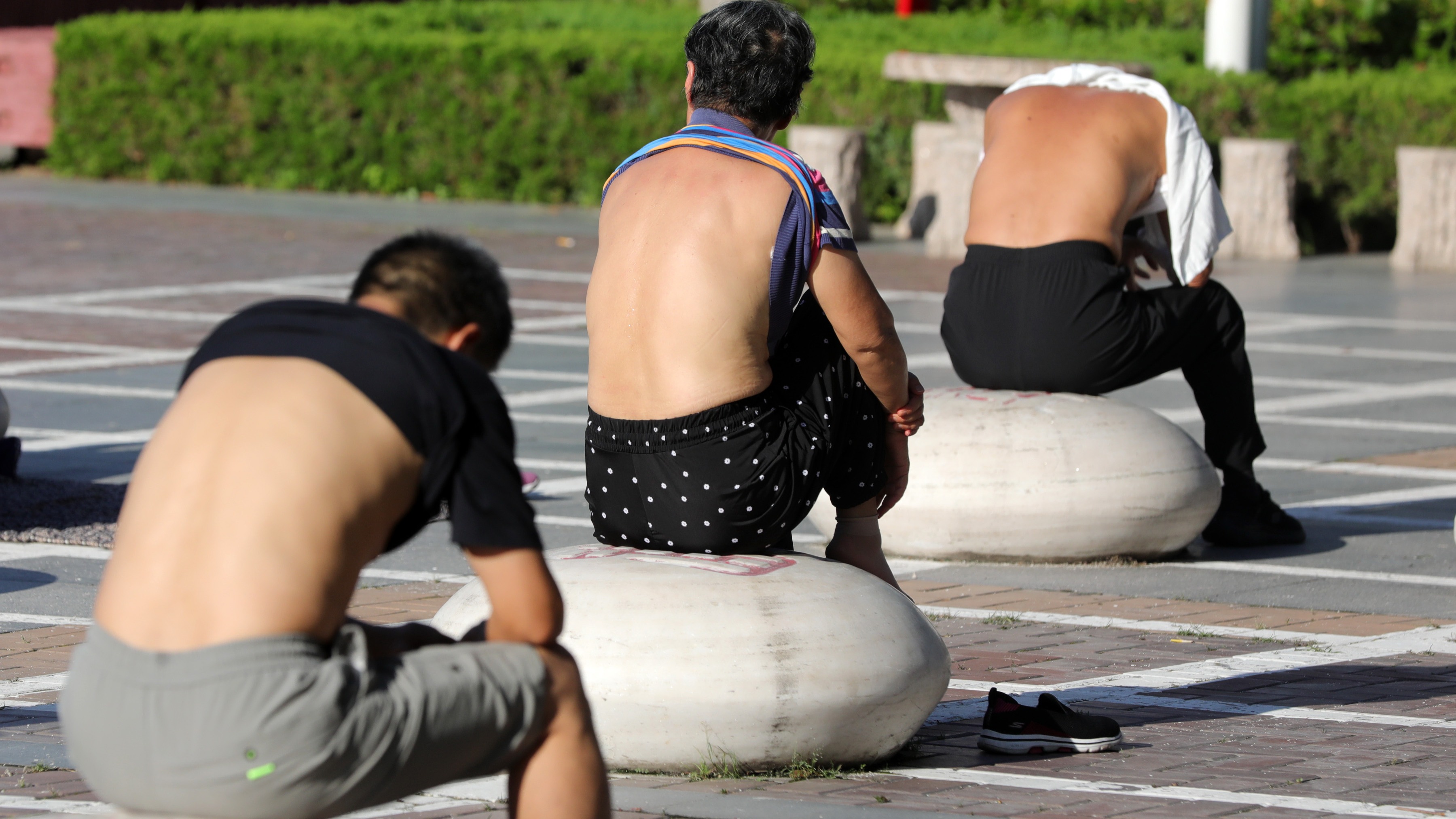 后背白晃晃,或趴,或卧,或坐,或立,星星点点地在楼顶、阳台、草地、河沿、长椅、公园小径或落地玻璃后,组成一幅“当代晒背图”,“身边蒸腾起来,冒着烟,感觉就像蒸包子一样。”