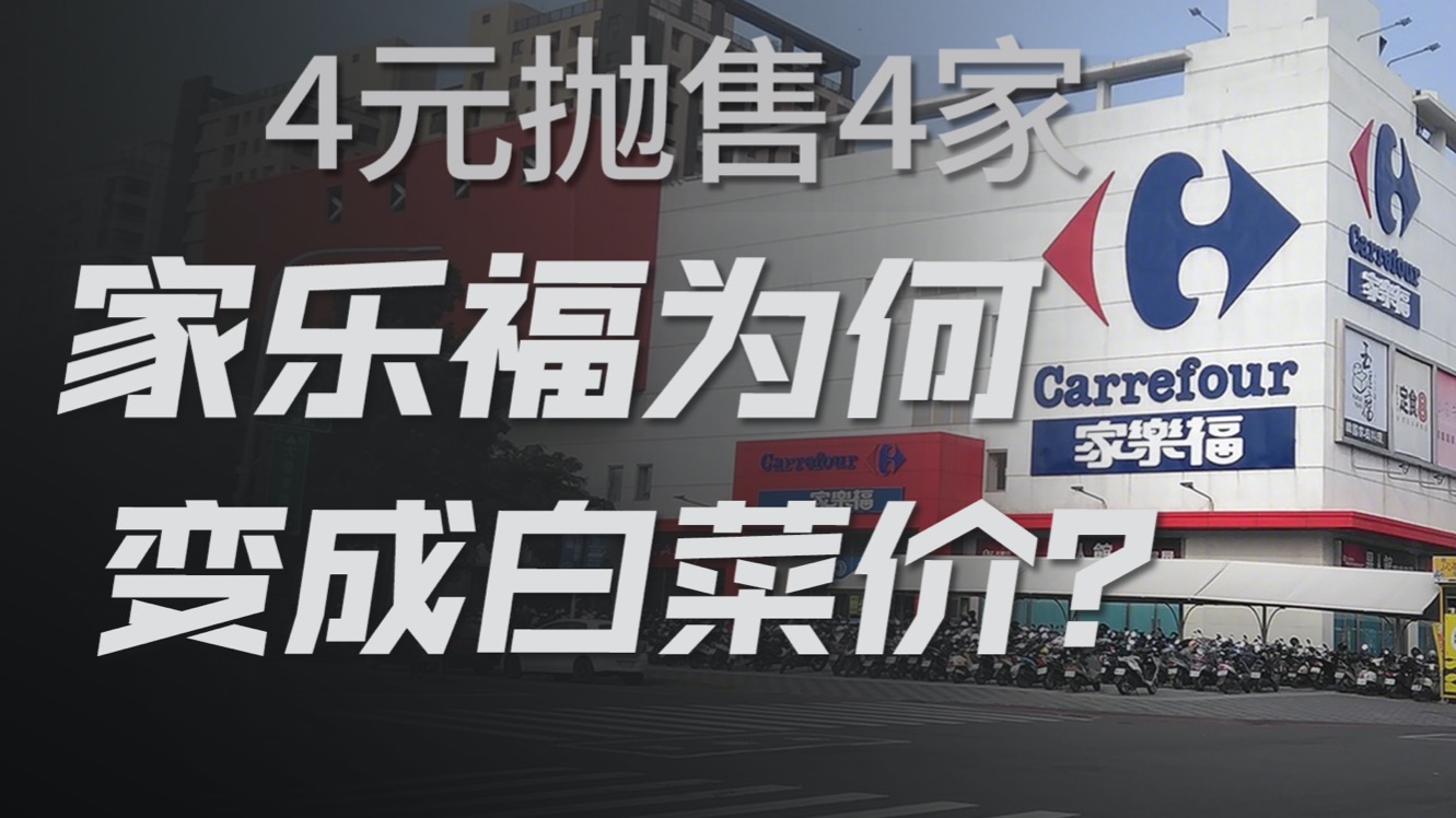 苏宁当年砸下48亿收购家乐福,如今却以4元“白菜价”甩卖仅剩的4家门店,成了名副其实的负资产。30年一梦,昔日超市巨头如今几乎退场。