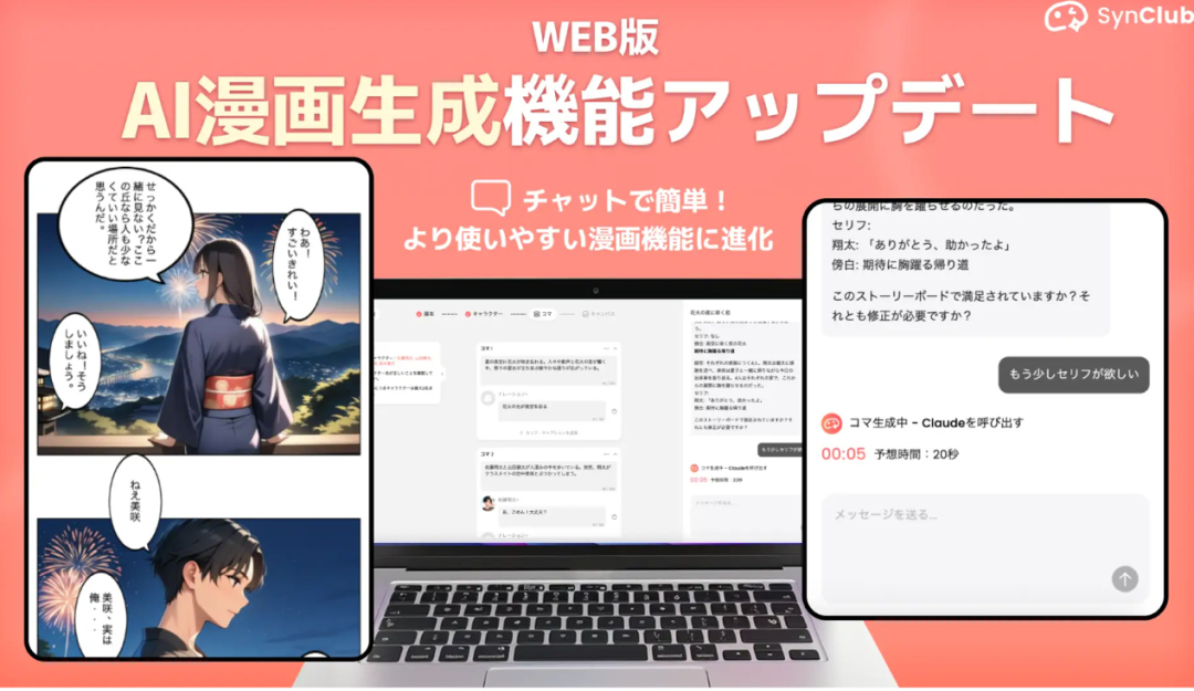 围绕日本用户偏爱的“二创文化”进行功能布局。“SynClub”不仅支持图片生成,还可一键将用户的聊天内容转化为简单动画或漫画,结合平台内的社区功能,鼓励用户进行分享与交流,进一步激发内容共创。